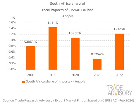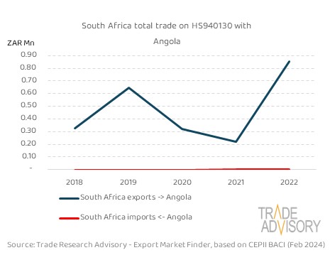 This report contains a summary snapshot of outcomes for the exports of HS940130 to Angola from the perspective of the home market (South Africa).