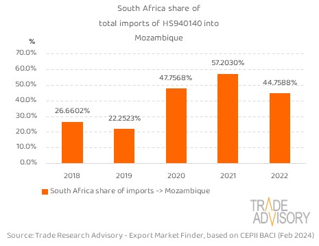 South Africa to date has supplied a relatively large share of Mozambique’s import demand specifically for this product which means: