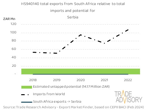 This report contains a summary snapshot of outcomes for the exports of HS940140 to Serbia from the perspective of the home market (South Africa). More technical detail is available on request from Trade Research Advisory.