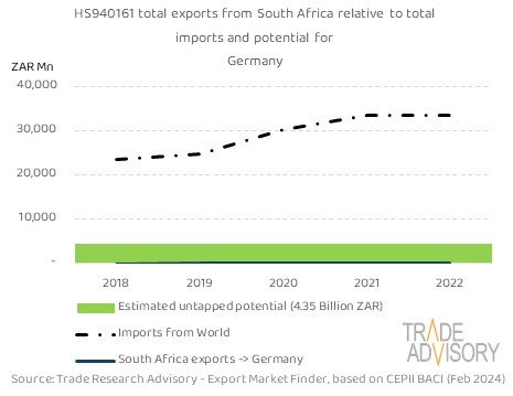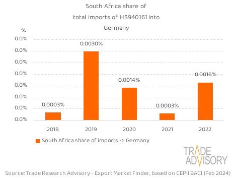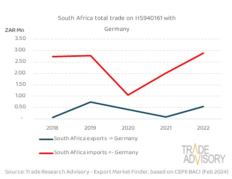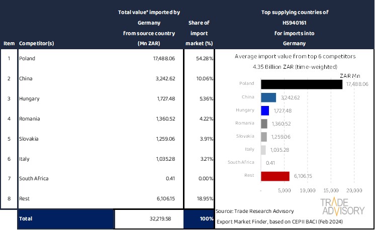 This report contains a summary snapshot of outcomes for the exports of HS940161 to Germany from the perspective of the home market (South Africa). More technical detail is available on request from Trade Research Advisory.