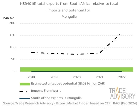 This report contains a summary snapshot of outcomes for the exports of HS940161 to Mongolia from the perspective of the home market (South Africa). More technical detail is available on request from Trade Research Advisory.