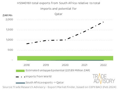 This report contains a summary snapshot of outcomes for the exports of HS940161 to Qatar from the perspective of the home market (South Africa). More technical detail is available on request from Trade Research Advisory.
