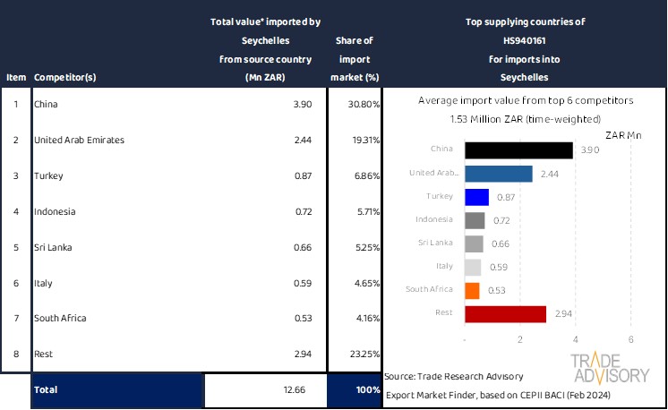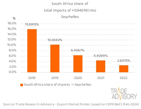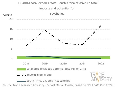 This report contains a summary snapshot of outcomes for the exports of HS940161 to Seychelles from the perspective of the home market (South Africa). More technical detail is available on request from Trade Research Advisory.