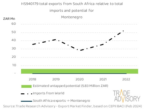 This report contains a summary snapshot of outcomes for the exports of HS940179 to Montenegro from the perspective of the home market (South Africa). More technical detail is available on request from Trade Research Advisory.