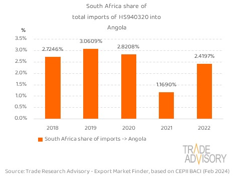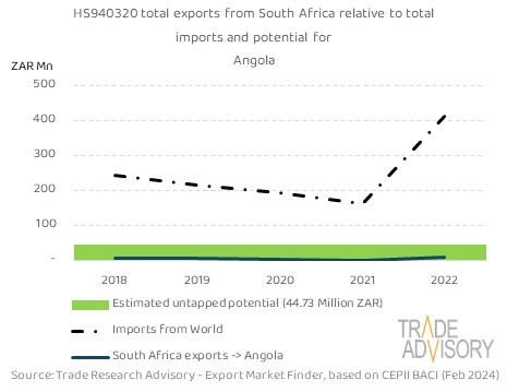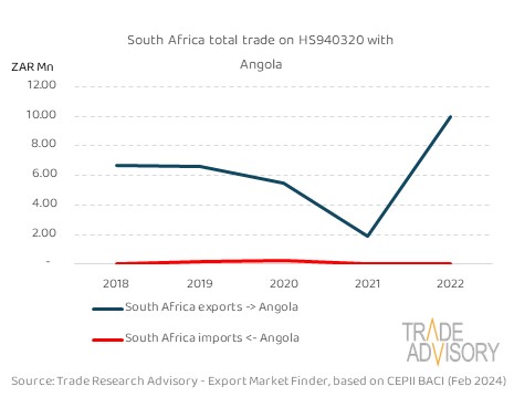 This report contains a summary snapshot of outcomes for the exports of HS940320 to Angola from the perspective of the home market (South Africa). More technical detail is available on request from Trade Research Advisory.