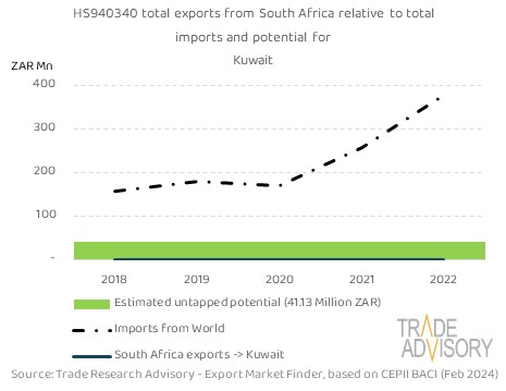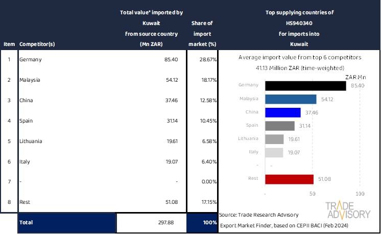 This report contains a summary snapshot of outcomes for the exports of HS940340 to Kuwait from the perspective of the home market (South Africa). More technical detail is available on request from Trade Research Advisory.