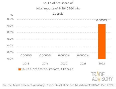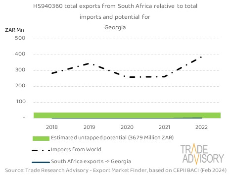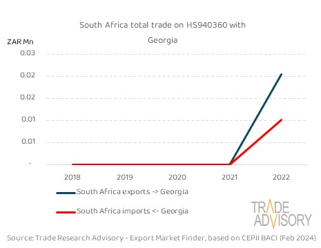 This report contains a summary snapshot of outcomes for the exports of HS940360 to Georgia from the perspective of the home market (South Africa). More technical detail is available on request from Trade Research Advisory.