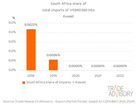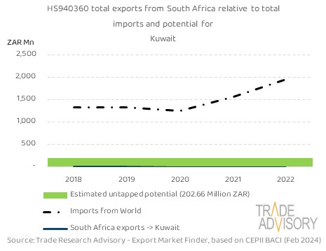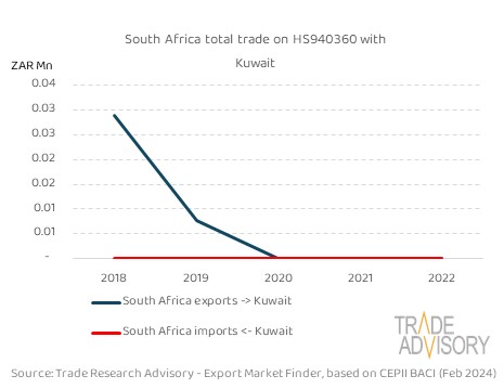 This report contains a summary snapshot of outcomes for the exports of HS940360 to Kuwait from the perspective of the home market (South Africa). More technical detail is available on request from Trade Research Advisory.