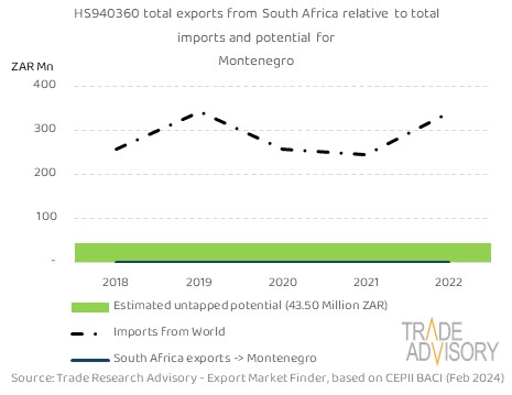 This report contains a summary snapshot of outcomes for the exports of HS940360 to Montenegro from the perspective of the home market (South Africa). More technical detail is available on request from Trade Research Advisory.
