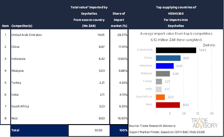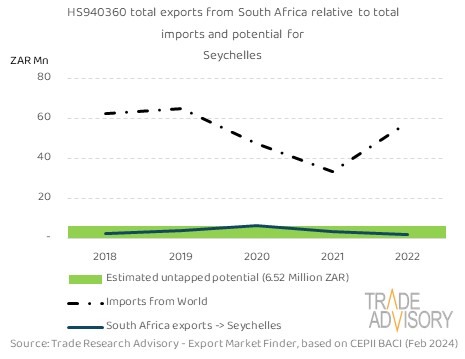 This report contains a summary snapshot of outcomes for the exports of HS940360 to Seychelles from the perspective of the home market (South Africa). More technical detail is available on request from Trade Research Advisory.