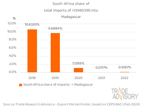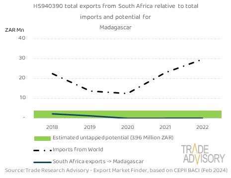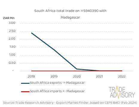 This report contains a summary snapshot of outcomes for the exports of HS940390 to Madagascar from the perspective of the home market (South Africa). More technical detail is available on request from Trade Research Advisory.