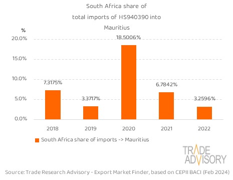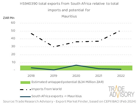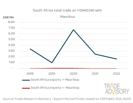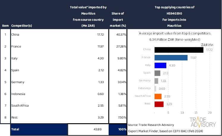 This report contains a summary snapshot of outcomes for the exports of HS940390 to Mauritius from the perspective of the home market (South Africa). More technical detail is available on request from Trade Research Advisory.