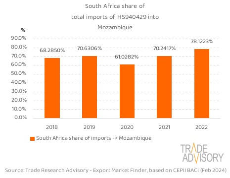 South Africa to date has supplied a relatively large share of Mozambique’s import demand specifically for this product which means: